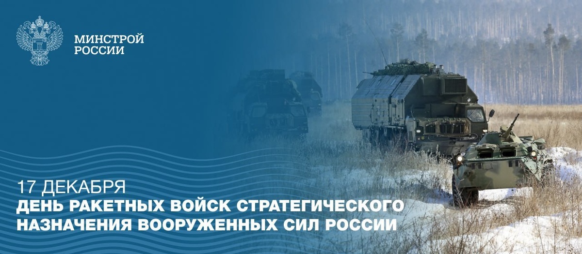 🔹Ракетные войска стратегического назначения являются одной из главных гарантий национальной безопасности. На РВСН возложена особая миссия по обеспечению суверенитета и территориальной целостности России. Военнослужащие ракетных войск ежедневно несут свою службу, демонстрируя беспримерную преданность Отечеству и высочайшую личную ответственность. 🎉Поздравляем и желаем здоровья, уверенности в завтрашнем дне, крепкой дружбы и успехов в службе на благо страны. 📲 Минстрой России в MAX