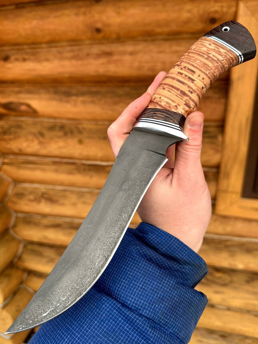 ! ⠀ Сталь Х12МФ (твердость 61-62 HRC) — прочность, выносливость, долгий срок службы заточки. Такой нож не подведёт в самых жёстких условиях: охота, рыбалка, туристические походы, работа по дереву и в полевых условиях. Рукоять из бересты — тёплая, лёгкая и не скользит даже во влажных руках. Гарда — специальной формы, защищает от соскальзывания руки. Заточка «в бритву» — режет легко и точно, сразу из коробки готов к работе. Кожаные ножны — в комплекте. *Дополнительно* можем изготовить формованные ножны (+8000 руб.). Цена: ~9.680~ → 8.440 рублей со скидкой! Как заказать? Пишите в Telegram: [@Nazarklinokbot](https://t.me/Nazarklinokbot), или WhatsApp/Viber: [ +79101343831](https://wa.me/79101343831) #нож #охота #рыбалка #ручнаяработа #кузницаНазарова #Х12МФ #Спецназ #подарокмужчине
