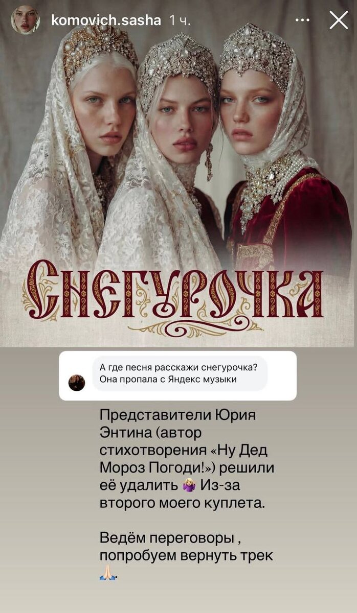 ? Уже наверное все слышали песню «Расскажи Снегурочка где была» в обработке ИИ от Саши Комович. Песня классная, спору нет. Набрала миллионные просмотры и появилась даже на Яндекс музыке. Только вот проблема с авторскими правами возникла. Представители автора слов Юрия Энтина потребовали ее удалить. А если бы не удалили, тогда суд и компенсация до 5 миллионов рублей за нарушение авторских прав. Но другие начали копировать эту песню в разных вариантах или стали создавать клипы на другие известные песни. И выкладывать это у себя в надежде, что клип тоже залетит. Может конечно и залетит клип, только и автор такого ИИ-ролика тоже может залететь на миллионный штраф. Поэтому, ребята, занимайтесь творчеством, но не нарушайте авторские права других. Иначе ждут вас судебные разбирательства и штрафы. А вы выкладываете переработанные искусственным интеллектом материалы у себя на странице?