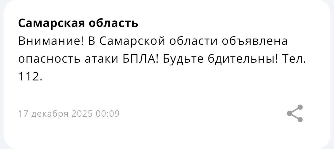 ⚡️⚡️⚡️⚡️ На территории Самарской области объявлена опасность атаки БПЛА! Будьте бдительны!