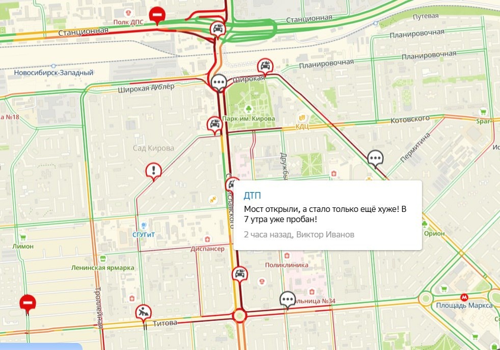 Пробки на 9 часов — 7 баллов. В заторах — разговоры о запуске нового моста — о том, что ничего не изменилось или стало только хуже. ◼️ Тем временем мэрия вечером 16 декабря отчиталась о настройке движения Левый берег (ул. Станционная): ✔️ Установлены ограждения, чтобы исключить опасные развороты с нарушением ПДД; ✔️ Светофор у дома № 22 в ближайшее время будет работать в режиме «по кнопке»; ✔️ Обновляется навигация для удобного съезда на проезд Энергетиков. Правый берег (ул. Ипподромская): ✔️ Введён временный режим работы светофоров на перекрёстке ул. Ипподромская – ул. Военная. Это уже позволило ускорить движение по Ипподромской в обоих направлениях, говорят чиновники. Сейчас также подготовлен проект существенных изменений схемы движения на перекрёстках ул. Ипподромская – ул. Военная и ул. Военная – ул. Тополёвая. Он согласован с Госавтоинспекцией и будет реализован ориентировочно к 22 декабря 2025 года. карта: 2gis.ru Подписаться| Прислать новость| Помочь бустами