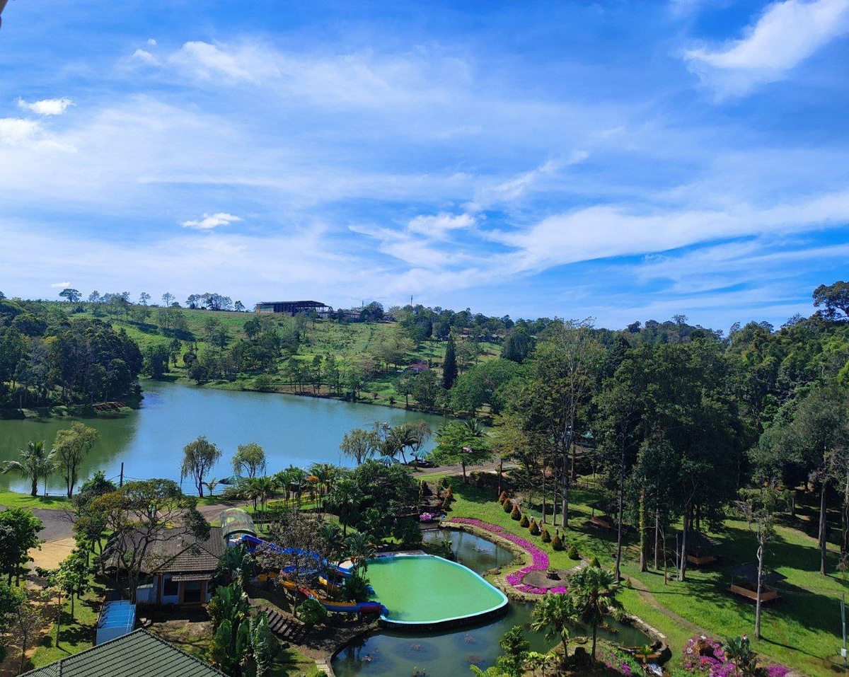 " В программе по Бао Локу (напомню, это город в горах, 900 метров над уровнем моря) у нас катамараны. Приятное развлечение с усилиями. Видишь вьетнамские красоты с другого ракурса. Первое фото -- это вид на озеро с колеса обозрения, второй - с тропинки в парке. А сейчас будут кружочки)