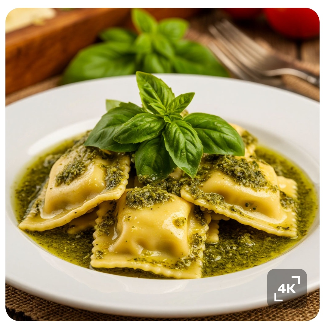 Равиоли с курицей и соусом песто — это вкусное и изысканное блюдо, которое прекрасно подойдет как для семейного ужина, так и для торжественного застолья. Домашние равиоли особенно ценятся за свежесть и возможность экспериментировать с начинками и соусами. В этом рецепте мы подробно рассмотрим, как приготовить равиоли с сочной курицей и подать их с ароматным соусом песто.
