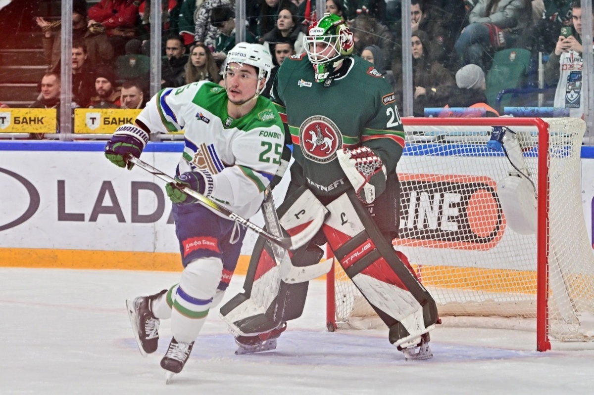 «Салават Юлаев» на выезде уступил «Ак Барсу» в «зелёном дерби» со счетом 3:6. После двух поражений подряд уфимская команда вновь оказалась вне зоны плей-офф. Казанцы начали встречу активно, и в итоге открыли счёт уже на шестой минуте. Несмотря на это, уфимцы смогли быстро отыграться: Денис Ян спустя 50 секунд сумел на пятаке переиграть голкипера соперника. Затем началась серия удалений у «Ак Барса», за счёт чего гости сумели надолго закрепиться в чужой зоне, и даже провели полминуты в формате «5 на 3», однако никак не могли поразить ворота Максима Арефьева. Во время четвёртого меньшинства команда из Татарстана сумела отличиться и снова выйти вперёд, а через полторы минуты и увеличить преимущество уже в равных составах. Во втором периоде в воротах вместо Семёна Вязового появился Илья Коновалов, который днём ранее сыграл на ноль за «Торос». Казанцы продолжили удаляться, и «Салават» дважды за первые 10 минут сыграл в большинстве. Отличные моменты в численном преимуществе были у Антона Бер