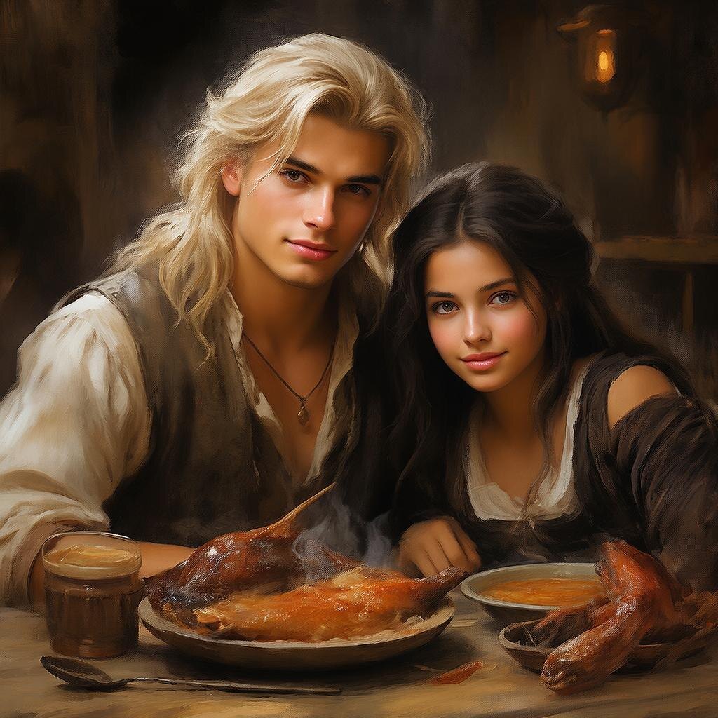 Хозяин, огромный мужчина с широкой улыбкой и ярким фартуком, усадил нас за стол, щедро осыпав комплиментами. Вскоре на столе появился ужин: дымящаяся миска наваристого мясного супа, сдобренного душистыми травами и сдобными пампушками, пропитанными чесночным маслом. Следом принесли огромное блюдо жареной дичи – перепела, утки и куски сочного оленьего мяса, посыпанного хрустящей корочкой. Завершало пиршество кувшин терпкого яблочного сидра, согревающего изнутри.