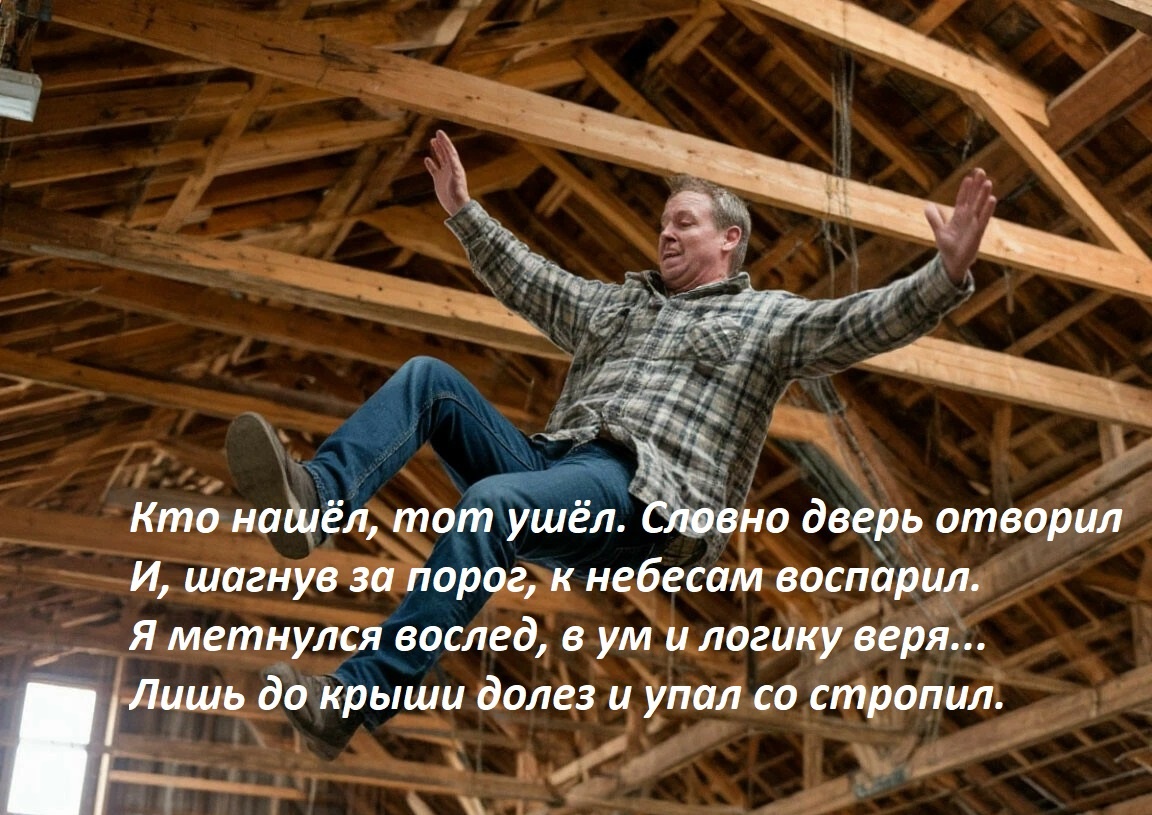 Лишь до крыши долез и упал со стропил.