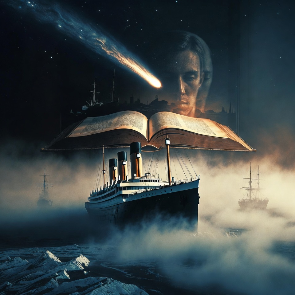 В 1898 году писатель Морган Робертсон выпустил роман «Тщетность». В нём описан гигантский лайнер «Титан», считавшийся непотопляемым, который сталкивается с айсбергом в Северной Атлантике…