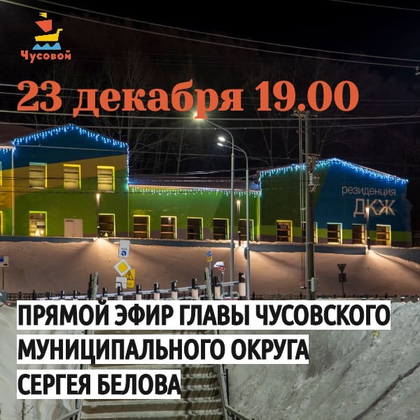 📌 Дата: 23 декабря 2025 года ⏰ Время начала: 19:00 🎤 Формат: Прямой эфир в нашем официальном сообществе "Чусовой. Первоисточник" ✅ Что вас ждет? - Ответы на ваши вопросы, задавайте их в комментариях под этим анонсом! - Итоги работы администрации за 2025 год. - Общие планы на 2026 год. До встречи в прямом эфире! Ждем ваших вопросов 👇🏻