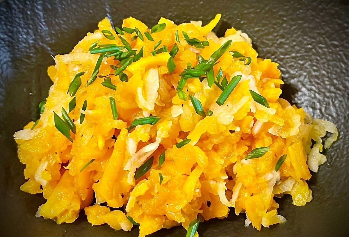Утро. Время простых рецептов Вашему вниманию: Салат из дайкона и тыквы Просто как Раз, Два, Три Раз: Дайкон (редька) трём на мелкой тёрке, добавляем соль/перец, немного лимонного сока Два: Тыкву трём на крупной тёрке. Бланшируем в сковороде с небольшим количеством воды до готовности. Три: Смешиваем тыкву и дайкон в равных пропорциях, добавляем зелёного лучка Пикантный салат готов! И никакого масла! Ангела за трапезой! Ваш ПП - Православное Питание - канал о пище, не только телесной, но и духовной Найти похожие блюда Вы сможете нажав на слово, перед которым стоит символ #⬇️ Либо воспользоваться разделом «ПОИСК РЕЦЕПТОВ»⬆️ #постно #пост #овощи #салат #дайкон #тыква #просто #низкокалорийное #безмасла #русскаякухня #авторский Наш канал в MAX