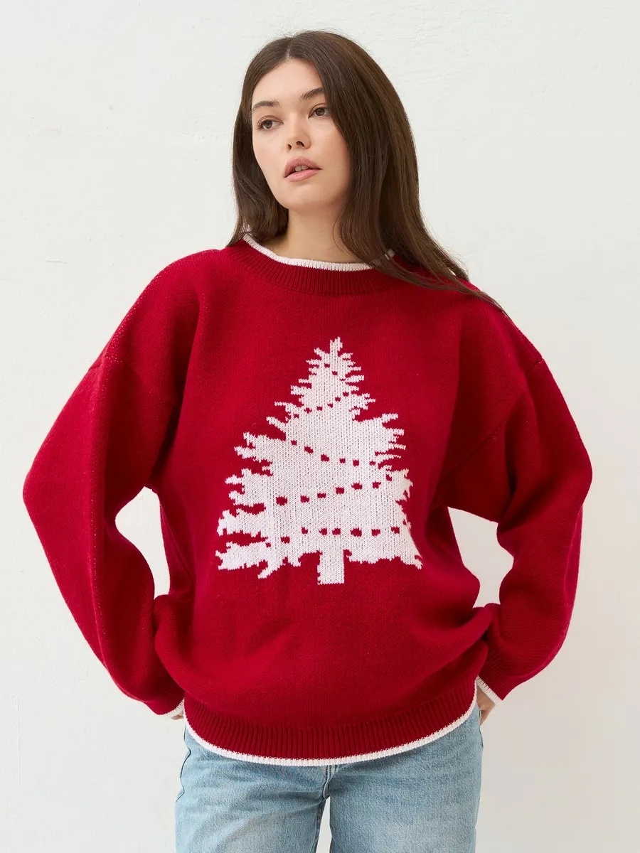 Новогодняя тематика в дизайне, вероятно, выражена через цветовую гамму (красный, зелёный, золотой) или через неброский тематический узор. Это делает его праздничным, но не кричащим, позволяя носить его на протяжении всех зимних каникул. Мягкая, приятная к телу фактура материала — ключевой параметр, ведь свитер предназначен для длительного ношения.
