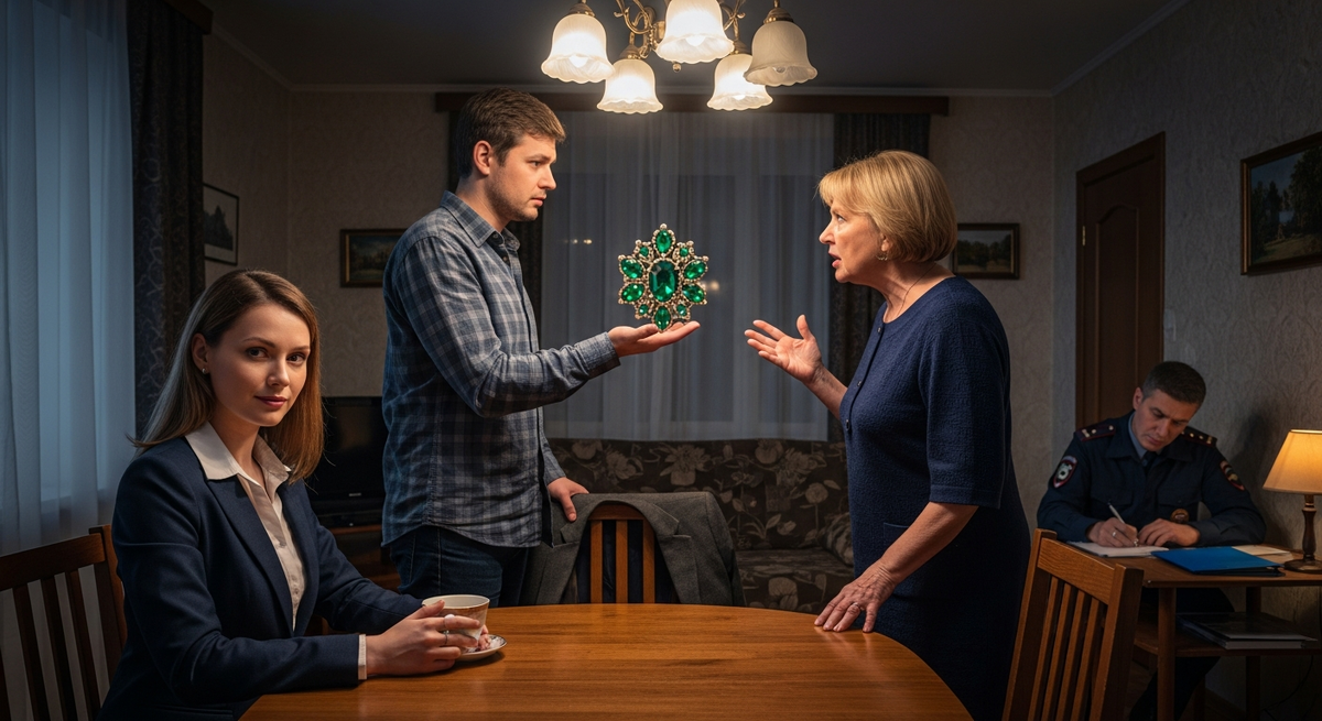 — Брошь! Моя фамильная брошь! С изумрудами! — голос свекрови взлетел до ультразвука. — Она была здесь! Я точно помню, я надевала её перед выходом! Я ещё в зеркало в прихожей смотрелась!