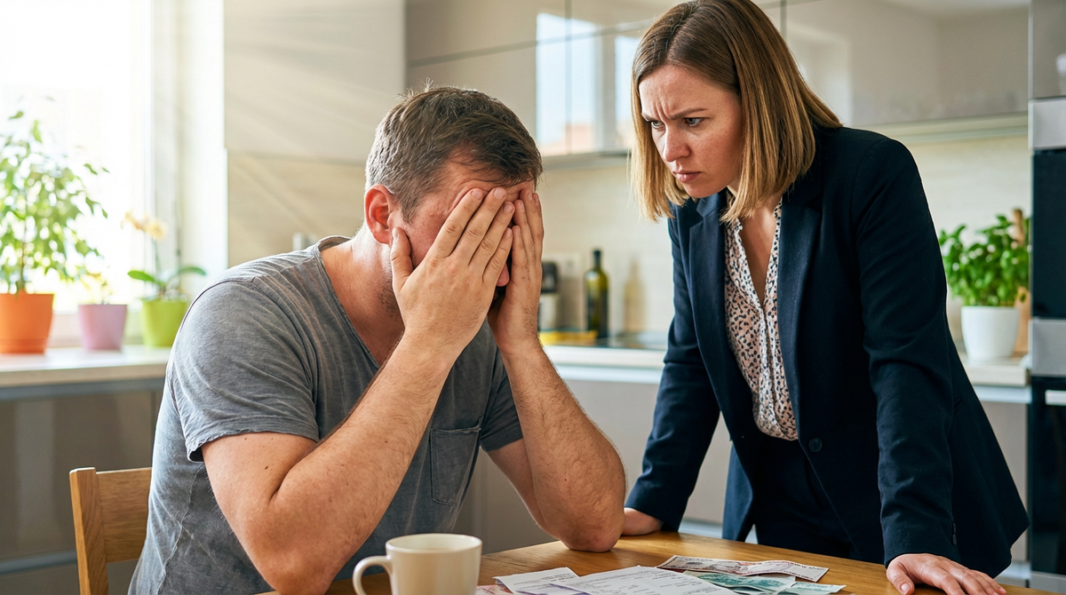 Вадим сидел за кухонным столом, обхватив голову руками. Перед ним стояла пустая рюмка, из которой пахло тем самым лекарством, и лежала стопка неоплаченных счетов за квартиру. Он медленно поднял на жену глаза – красные, воспаленные, полные какой-то безнадежной тоски.
