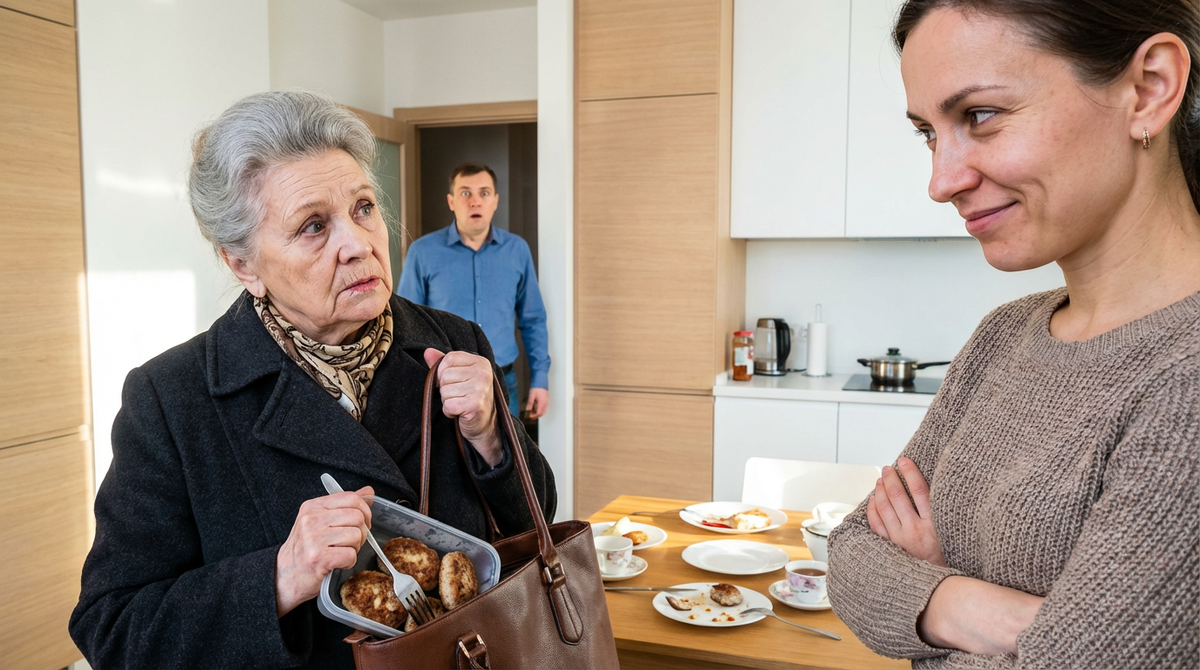– Да что ты мне допрос устраиваешь?! Жалко ей куска хлеба для матери мужа! Я, может, дома распробую! Может, мне показалось! Вкус у человека меняется! А ты... мелочная! Крохоборка! Я сына растила, ночей не спала, а невестка мне котлету пожалела!