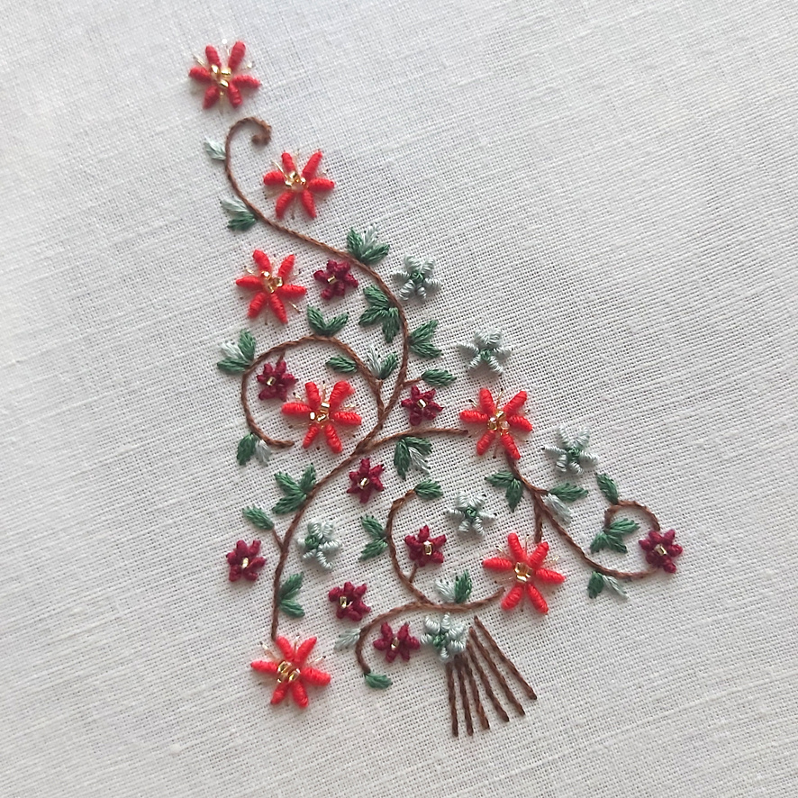 Каждый год , начиная с ноября, я делаю мастер-классы с вышивкой елочек, каждый год елочки разные, я показываю разные техники вышивки - контурные, декоративные, наборные швы плетение, гладь... Материалы тоже разные - мулине, ленты, фетр, бисер... Сегодня покажу вам последнюю елочку этого года, закрывающую галерею елок. Эта вышивка для рукодельницы, умеющей вышивать, она достаточно простая. Что нужно для вышивки - отрез ткани, пяльцы, мулине, две иглы (для ручного шитья и длинной иглы для шва "рококо"). Какие швы нужно знать? Их совсем немного: И все! Цветная схема елочки В этой вышивке вы можете изменить цвета мулине, сделать свою елочку. Черно-белая схема для переноса на ткань Несколько слов по выполнению вышивки. 1. Вышивать можно на любой подходящей ткани, я вышивала на белорусском льне. 2. Вышивка мулине в 2 нити, я вышивала мулине Gamma, можно вышивать по своему подбору, здесь это не принципиально. 3. Начните вышивать со стеблей и веток, они являются основой вышивки. 4. Далее вышив