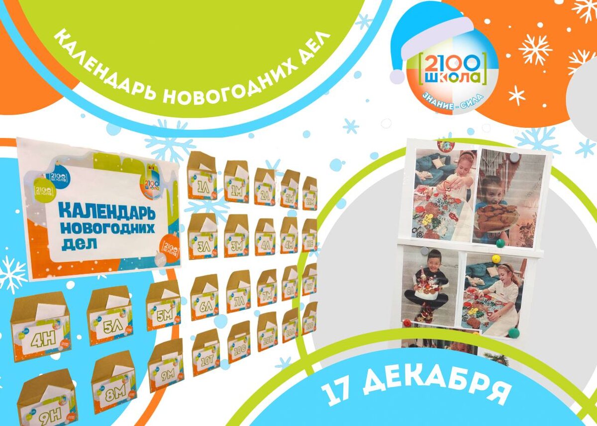 ! Предновогодняя активность «Календарь новогодних дел» увеличивает аудиторию. ❄️Школьники 1-11 классов с огромным энтузиазмом включились в проект: ❄️украшают классы, ❄️готовят творческие сюрпризы, ❄️планируют добрые акции. ☃️Школа наполняется праздничной атмосферой, а каждый день календаря приносит новые идеи и улыбки! ❄️Сегодня своими итогами поделились ребята из 4Н, 4Л, 5Л и 10Л классов! Следите за нашими новостями - впереди ещё много сюрпризов и добрых дел! 🚗 📸Больше фото тут #Школа2100 #ДОНМ #МРСД35 #КалендарьНовогоднихДел #НовыйГод