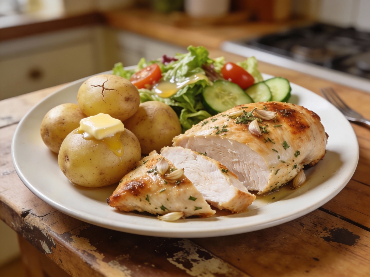 Уникальность: Простая и скучная курица становится праздничной — добавляем чеснок, петрушку и немного лимона.