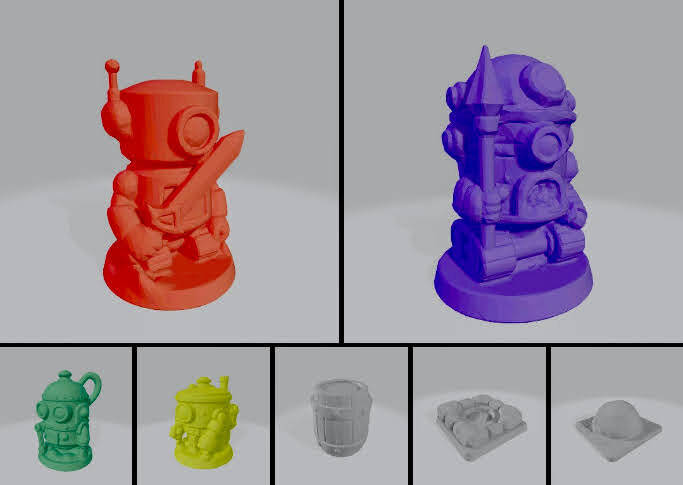 Обновленные stl файлы фигурок роботов и компонентов, стилизованные под low-poly для игры Битва Големов v4