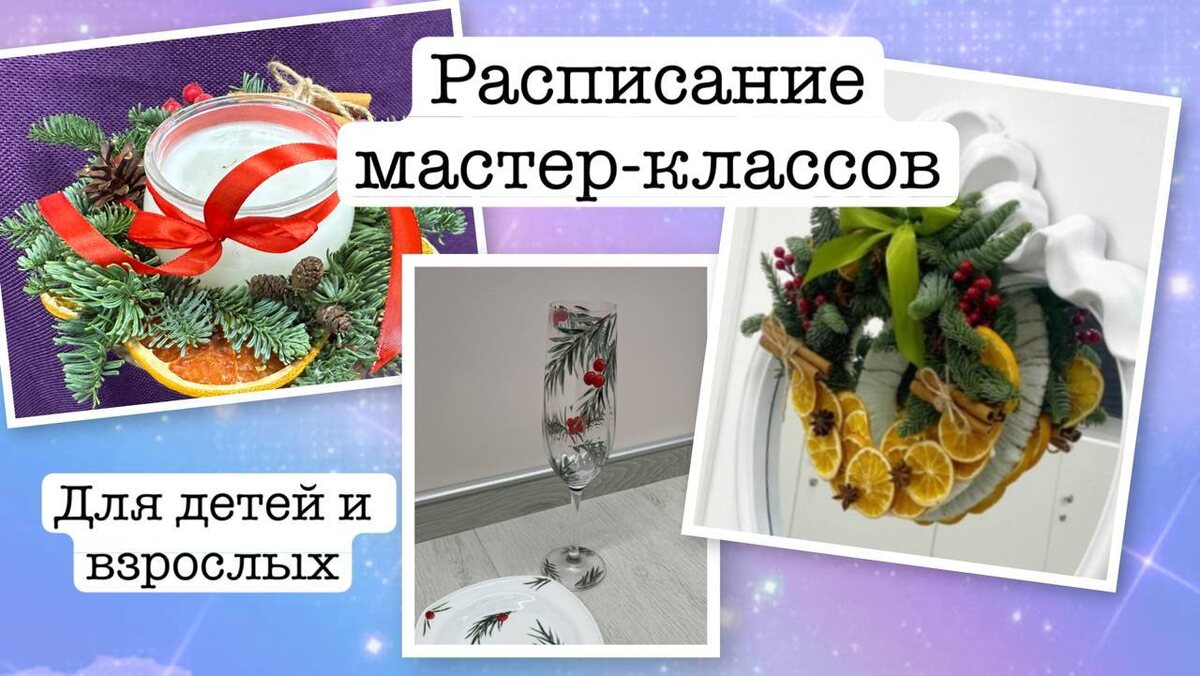 👉 Вы можете прийти с ребенком, доплатив за вторую поделку. 🎄 «Новогодний венок из ели и апельсинов» ⭐️ 18 декабря в 18:00 ⭐️ 20 декабря в 13:00 Сделайте ароматный венок и привнесите нотки Нового года в свой дом. Стоимость 3500₽ 🎄«Свеча новогодняя» ⭐️ 20 декабря в 11:00 Свеча с живой пихтой. Стоимость 2200 ₽ (доплата за вторую свечу 1300₽) 🎄 «Новогодний стакан/бокал» ⭐️ 21 декабря в 15:00 ⭐️ 24 декабря в 18:00 Роспись в новогодней тематике. Стоимость 1500 ₽ (доплата за второй стакан/бокал 800₽) Запись и 💯 оплата обязательны. Место проведения «Спортотека ПРО» 📍Ул.Авиационная дом 68 к4 / 2 этаж ☎️ 8-925-288-05-87