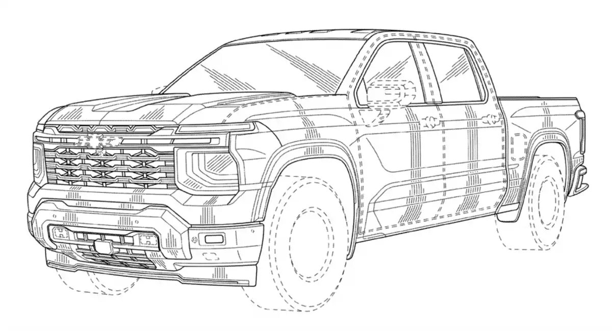 Недавно в сети появилось патентное изображение совершенно нового Chevrolet Silverado 2026, который обещает серьезно преобразиться к следующему году году. Хотя дебют новинки еще впереди, уже ясно: внешний облик и интерьер модели будут радикально пересмотрены, однако под капотом, по предварительным данным, революции ждать не стоит — основные моторы сохранятся от предшественников. Читать на сайте: Chevrolet Silverado 2026: новый дизайн, изогнутый экран и свежий логотип, но моторы прежние Экстерьер нового Silverado во многом продолжает стилистику нынешнего поколения, но не обходится без модных новшеств. Передняя часть все так же выполнена в стиле раздельных фар, только теперь, предположительно, световые элементы стали крупнее, а дневные ходовые огни заметно тоньше и элегантнее. Солидная решетка радиатора осталась на своем месте, визуально делая автомобиль еще массивнее, а массивный передний бампер дополнен современным радарным датчиком (фото: Chevrolet). К слову, изменения затронули и задн