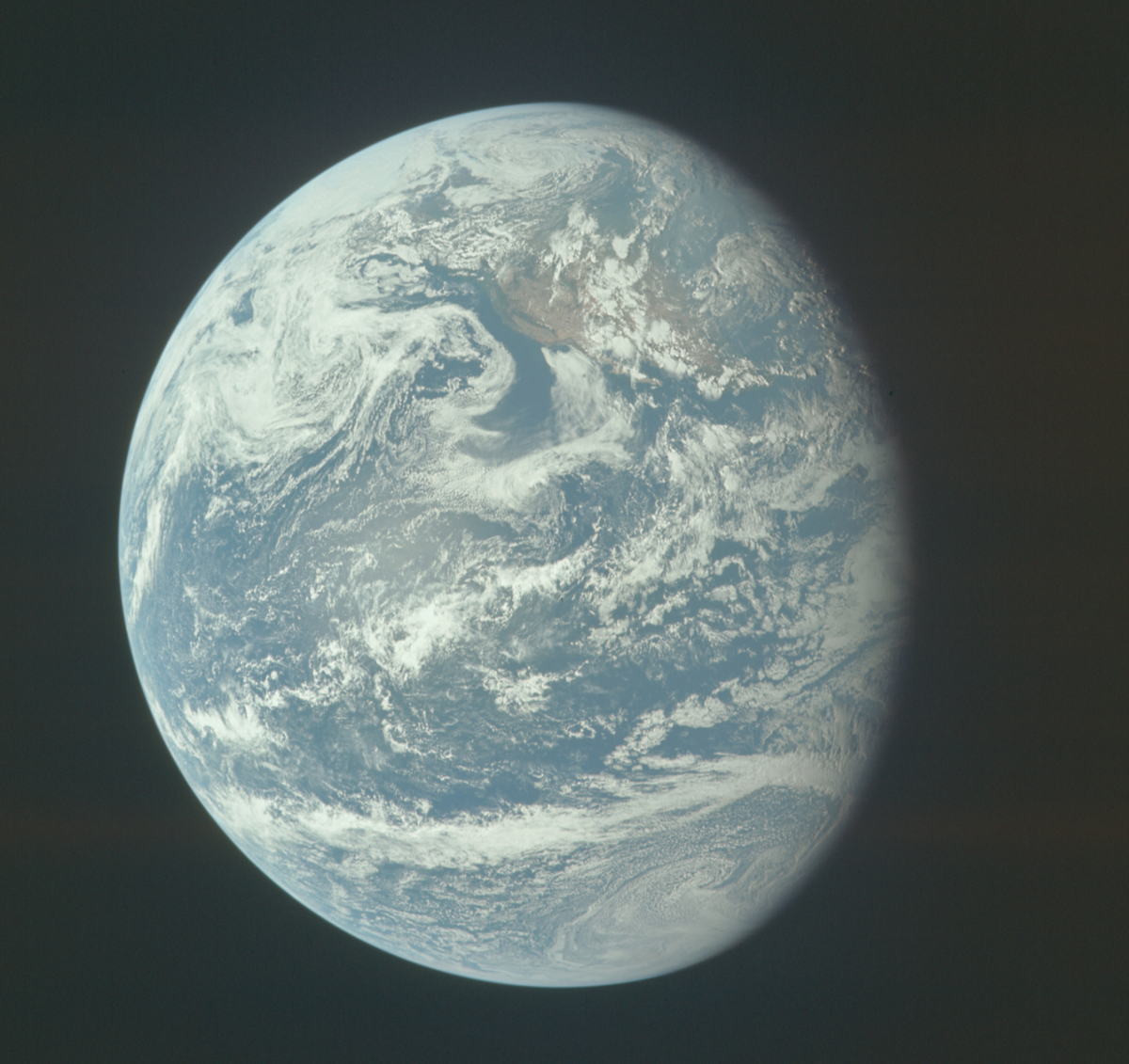 «Кажется, у вас скоро прояснится», — сказал мистер Армстронг Центру управления полётами из космоса, находясь на расстоянии 133 564 миль. — «Край облачной системы почти достиг вас».