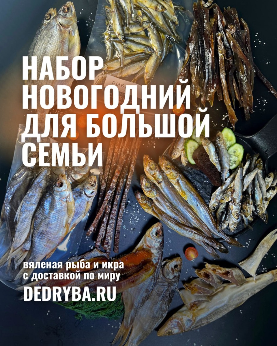 🔥 Шикарный набор на новогодний стол со вкуснейшими деликатесами весом более 6,4 кг. Для тех, кто выбирает лучшее! Берите на пробу, это идеальная возможность попробовать разнообразие рыбных деликатесов. Выгода при заказе - 5010 руб! 🐟 Вобла 1 кг 🐟 Тарань 1кг 🐟 Сопа 1 кг 🐟 Густера 1 кг 🐟 Чехонь 400 г 🐟 Жерех балык книжка 1 шт (1,1-1,4 кг) 🐟 Балык Карася 1 шт (250 г) 🐟 Икра воблы 100 г 🐟 Икра лососевая 100 г 🐟 Мидии 100 г 🐟 Соломка карася 100 г 🐟 Корюшка семечки 200 г 👉 Цена набора 12990 руб вместо 18000 руб 🎁 При заказе до 22 декабря - доп скидка 10% 👉 Больше наборов и сочной рыбки 👈 Отправка каждый день без переплаты посредникам. Доставка по России, Беларуси, Казахстану и всему миру - курьером, почтой, транспортной компанией СДЕК. ➡️ Пишите в сообщения @dedryb или бота @dedrybabot! Поможем с выбором и отправим в день заказа! 🚚