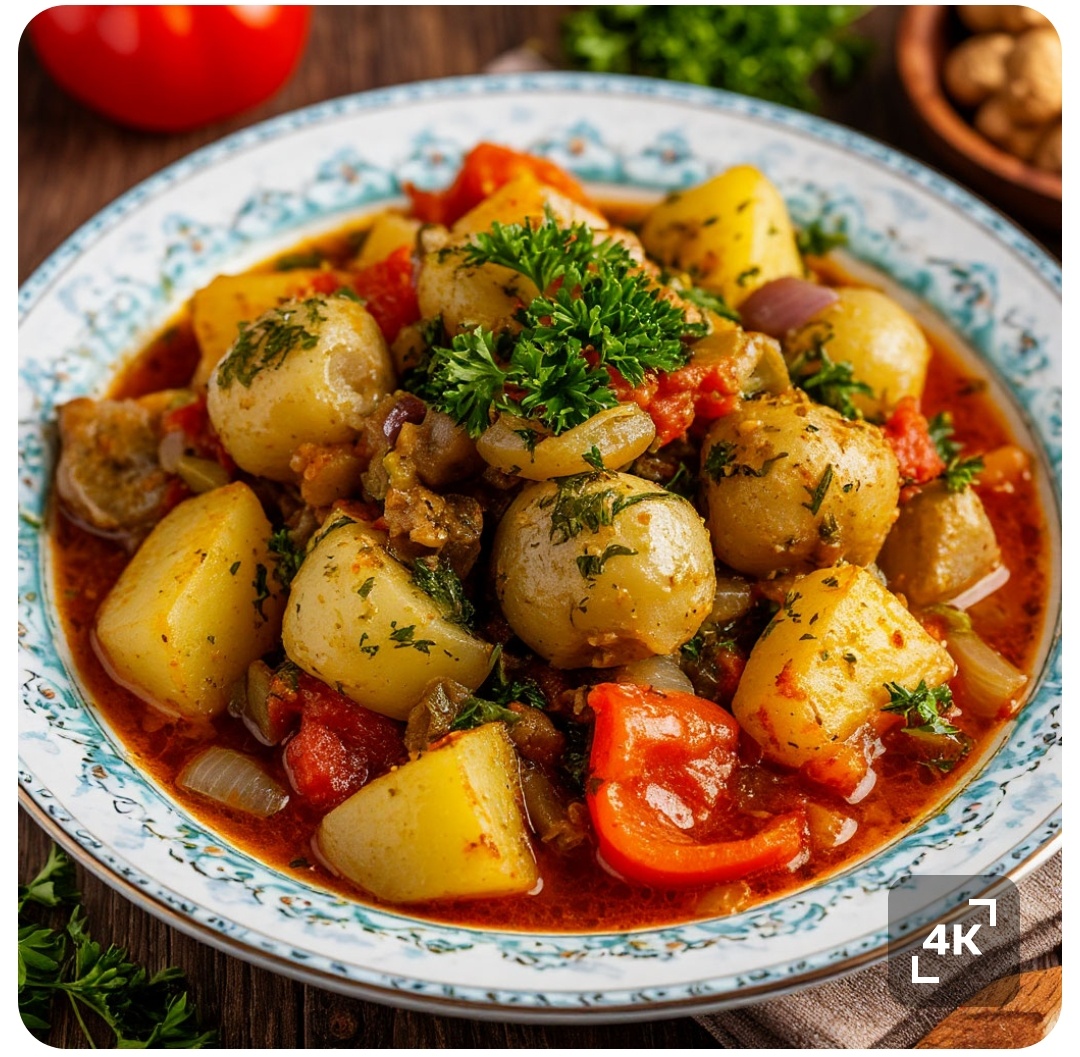 6. Проверка готовности. Готовность думлямы проверяют по мягкости мяса и овощей. Картофель должен стать мягким, мясо – нежным и легко отделяться от костей (если они есть).