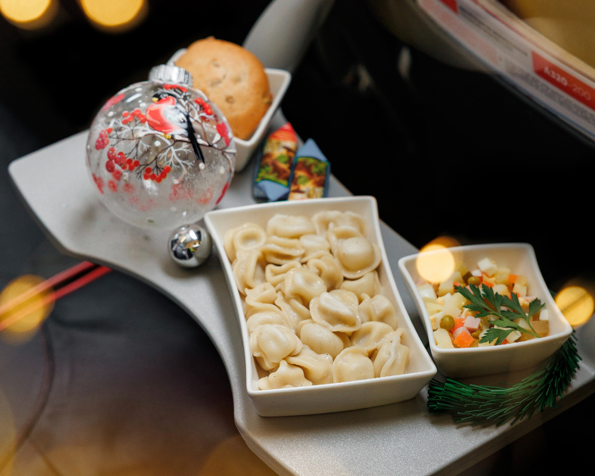 Новогоднее настроение уже на высоте? Мы знаем, как поднять его ещё выше: заказать новогодний стол прямо на борт! В программе нашего традиционного праздничного застолья: 🥟 пельмени с курицей или говядиной, 🥗 оливье с колбасой, 🥖 мягкая булочка, ☕️ ароматный чай, 🍬 новогодние конфеты. Если у вас уже есть билет на даты с 25 декабря по 14 января*, то заказать рацион «Праздничный» можно за 699₽ — и, как и всегда, до 99% стоимости питания оплатить бонусами программы лояльности (чтобы начать их копить, достаточно зарегистрироваться на нашем сайте). * Акция действует только на вылеты из российских аэропортов ❗️ Напоминаем, что заказать еду нужно заранее, а крайний срок приём заказов отличается от аэропорта к аэропорту. 36 часов до вылета — Барнаул, Благовещенск, Владивосток, Владикавказ, Волгоград, Воронеж, Геленджик, Горно-Алтайск, Грозный, Калининград, Кемерово, Краснодар, Махачкала, Новосибирск, Петропавловск-Камчатский, Сочи, Сургут, Тюмень, Улан-Уде, Уфа, Хабаровск, Южно-Сахалинск, Як