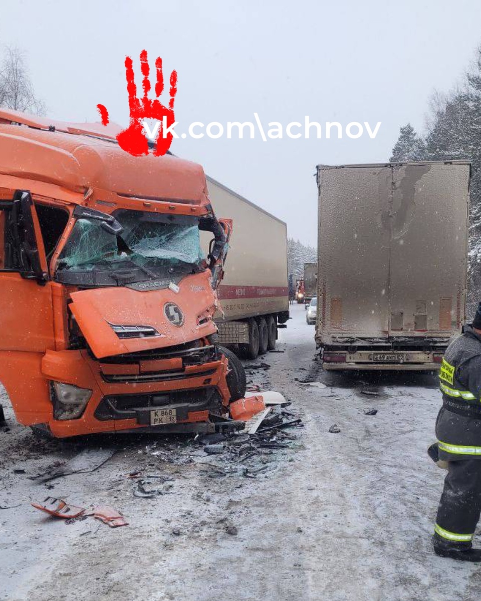 Движение на участке полностью перекрыто. На фото видно, что удар был сильный - большегрузы получили механические повреждения. Сотрудники областной ГАИ сообщили, что на 1656 км федеральной автодороги водитель грузового автомобиля «Scania», который двигался в сторону Москвы, совершил столкновение с впереди идущим грузовиком «DAF». После удара «Scania» выехал на полосу встречного движения, где произошло лобовое столкновение с автомобилем «Shacman», двигавшимся в направлении Челябинска. Сейчас движение там перекрыто.