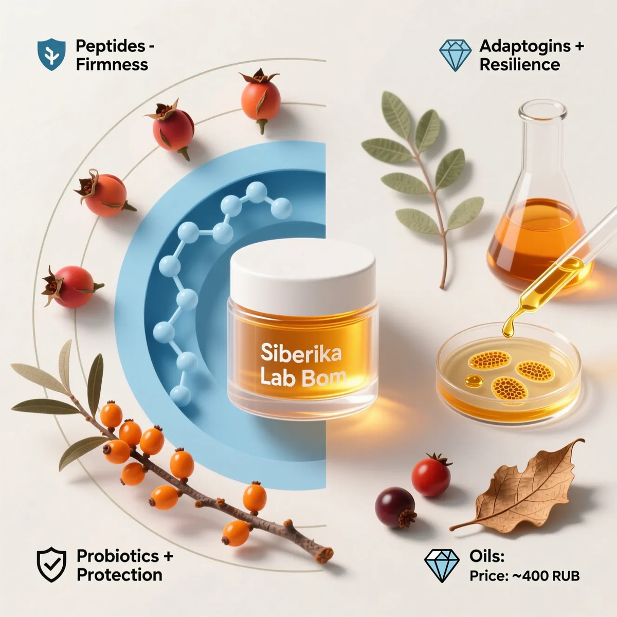 Линейка «Siberika Lab Biom» от «Натура Сиберика» позиционируется как прорывной «био-инженерный уход», где мощь сибирских адаптогенов встречается с лабораторными пептидами и пробиотиками. Особенно интригует, что столь технологичный состав предлагается по доступной цене (около 400–800 рублей), бросив вызов стереотипу, что серьёзные активы стоят дорого. Я протестировала крем Biom Anti-Age peptide на возрастной, чувствительной и проблемной коже в условиях зимы.