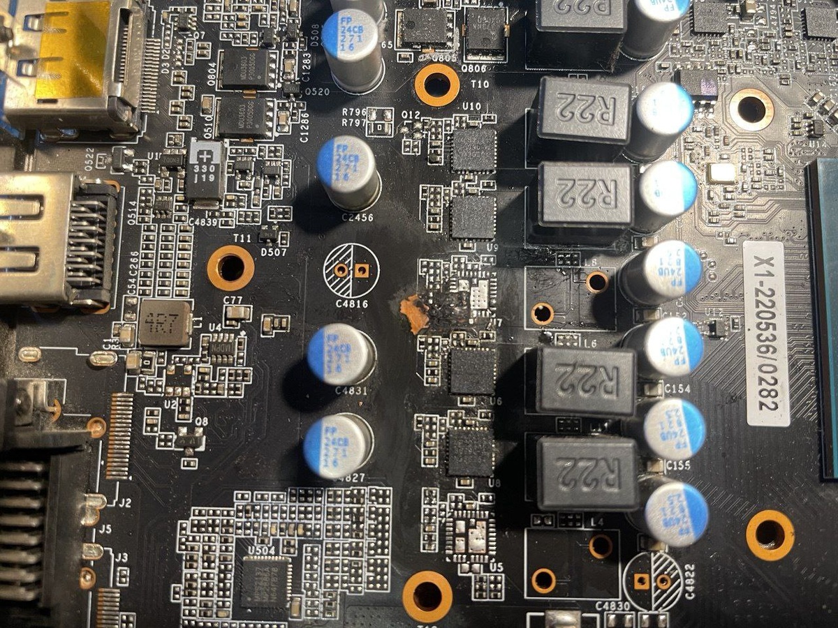 🍃 Всем привет! Делюсь новостями с полей ремонта. 1. KFA2 RTX 2060 — сложный случай Выпилил прогар, он сквозной. 😮💨 Теперь задача — ювелирно восстановить дорожки, изолировать слои и попробовать запустить карту на оставшихся фазах, затем перенести фазу на пустое место. Работа кропотливая. 2. iMac 27" 2013 — ТРИУМФ! 🎉 Работает уже неделю как часы!История с хэппи-эндом: Все попытки реанимировать старый GPU провалились. Взял новый чип из Китая, перепаял его (предварительно наметив метки на плате), собрал мак «на скорую руку»… И он завелся! Без артефактов, идеально! Потом уже начисто, отмыл плату, собрал, протестировал и дома доукомплектовал SSD. Что вышло по деньгам: iMac— 7 000 ₽ GPU— 3 300 ₽ M2 SSD 512 Гб— 3 700 ₽ SATA SSD 512Гб — бесплатно (спасибо доброму человеку!) · 4 дня моего времени. Личное наблюдение: Раньше ноутбуки щёлкал как орехи, а сейчас навыки подрастерял. Нет большего врага, чем забытая практика. Так что ремонт ноутбуков — не моя история. 3. Gigabyte RTX 3090 —