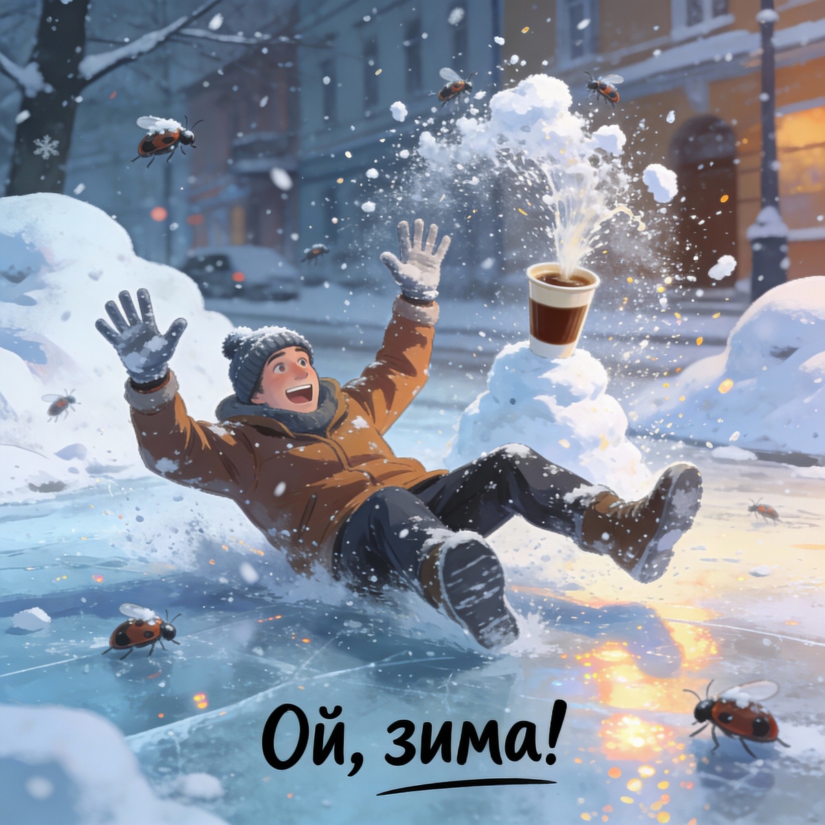 Зима — это когда природа мстит за летние шашлыки. Вы выходите из дома уверенным ковбоем, а через минуту лежите на асфальте, размахивая руками, как снеговик в конвульсиях. Знакомо? Конечно! Ведь каждый второй россиянин зимой превращается в фигуристку без коньков. Представьте: утро, -20, машина не заводится. Вы её толкаете, выдыхая пар, как дракон. Наконец завелась — ура! А через 100 метров она буксует в сугробе. Сосед с лопатой: "Давай помогу!" И вот вы вдвоём роете траншею до Китая. В итоге машина выезжает, а вы стоите по пояс в снегу, думая: "Зачем я вообще куда-то еду?". А падения? О, это классика! Идёшь грациозно, вдруг лёд — бац! Руки-ноги в стороны, сумка летит, кофе разлетается фонтаном. Прохожий спрашивает: "Всё ок?" А вы: "Да, репетирую для Олимпиады!" Или когда чистите снег с крыши: один комок — и вы сами снеговик. Шапка на боку, шарф в зубах. Жена: "Герой!" Муж: "Клоун!". Топ-5 зимних фейлов: Дорогие читатели, делитесь своими фейлами в комментах! Кто самый неудачливый сне