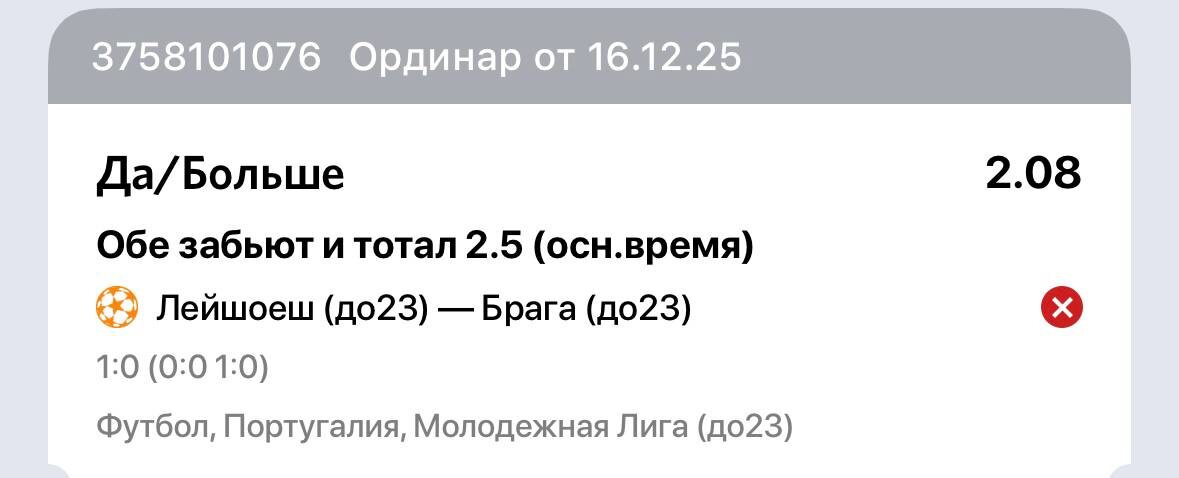 Вся статистика была за результативность в матче: ✅ в 10 из 12 последних матчей Лейшоеша и в 11 из 12 последних матчей Браги. Обе команды забивают (и пропускают) практически в каждом матче ✅ Атака у обоих топ! Лейшоеш забивает в среднем 2.2 гола за игру, Брага - 1.8. Обе серии с забитыми голами идут подряд по 12 матчей ✅ В 6 из 7 последних очных поединков между этими командами было забито больше 2.5 голов ✅ Лейшоеш последнее время часто забивает больше двух мячей (4 из 6 матчей), а Брага пропускает в 12 играх кряду Из минусов: Лейшоеш часто не забивает Браге. НО! Это противоречит их текущей форме (12 матчей с голом подряд) и общей статистике по ОЗ в этом сезоне 🏋️♂️ Матч должен был быть открытым и результативным, но по факту был очковый футбол , у Браги вообще ноль шансов , а Лейшоеш забил уже на 90+ минутах 😡 Играли на ничью , словили позор 😄