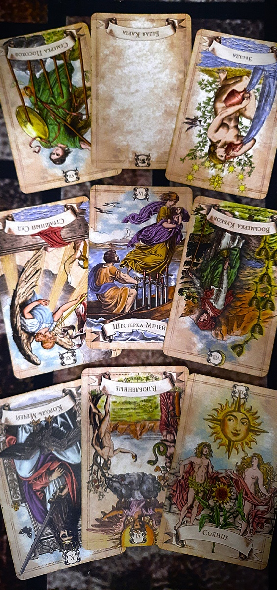 Добра всем, подписчикам, гостям канала. Я рада вновь вас приветствовать на своем канале Зеркало Судьбы. Меня зовут Наталья, и здесь я буду читать для вас различные расклады. И не только :) Для записи на личную консультацию обращайтесь: WhatsApp, Telegram, МАХ +7 901 198 63 32 (в ответном сообщении я вам подробно расскажу об условиях и стоимости) А сейчас начинаем наш расклад... Перевернутая Семерка Жезлов говорит о том, что мужчина, вероятно, не готов отстаивать свои намерения относительно вас. Возможно, он избегает открытых разговоров о будущем, уходит от обсуждений серьезных планов или чувствует, что внешние обстоятельства сильнее его желаний. Ему проще отступить, чем бороться за отношения и это создает барьер на пути к браку. Перевернутая Белая Карта указывает на неопределенность, в его сознании пока нет четкой картины вашего совместного будущего. Его мысли о вас могут быть размыты, противоречивы или попросту не оформлены - он сам не до конца понимает, чего хочет. Это не значит, что