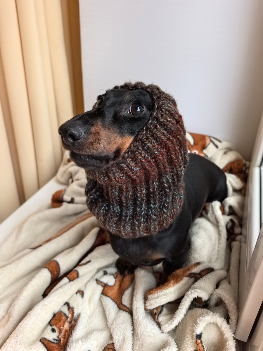Глядя на Симбу в новом вязаном снуде вспомнилось далекое детство.