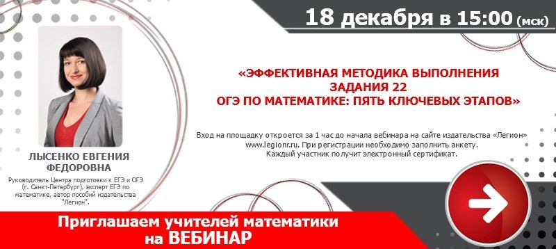 " Дата: 18.12.2025 (Чт) Время: 15:00 Лектор Лысенко Евгения Федоровна - руководитель Центра подготовки к ЕГЭ и ОГЭ (г. Санкт-Петербург), автор пособий издательства "Легион". Участие бесплатное. Выдается сертификат. Требуется регистрация на сайте издательства
