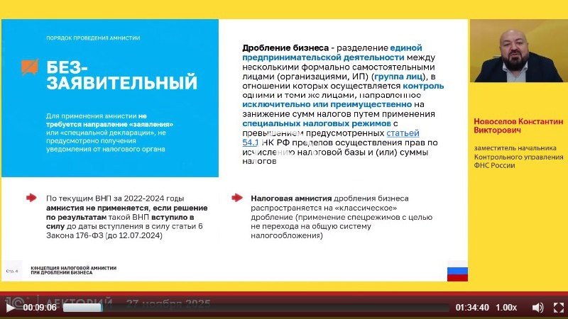 этот и другие аспекты применения налоговой амнистии рассмотрел Константин Новоселов, заместитель начальника Контрольного управления ФНС России, д.э.н., профессор кафедры налогов и налогового администрирования Финансового университета при Правительстве РФ, в лекции на тему: Дробление бизнеса: порядок применения налоговой амнистии Отзыв слушателя: Спасибо! Всё понятно, очень интересная лекция 👉 Смотрите бесплатно полную видеозапись лекции *️⃣ Дополнительные материалы налоговой амнистии при дроблении бизнеса смотрите на сайте ФНС 🚨Подписывайтесь на @lector_1c