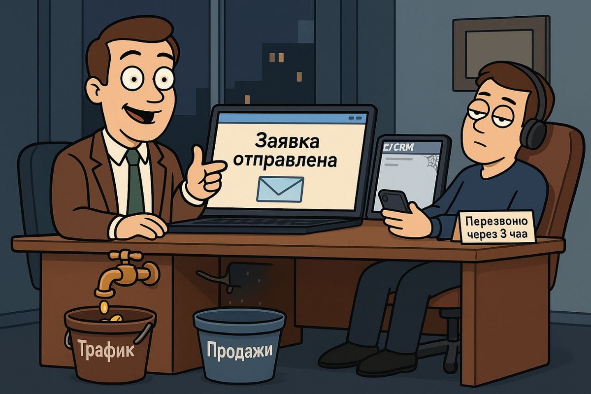 Неважно, на чём он сделан: Битрикс, Тильда, Вордпресс, кастом, «нам делали знакомые». У всех финал один и тот же: сайт живёт своей жизнью, бизнес платит за него (и за рекламу тоже), а денег это не приносит. Обычно владелец говорит уверенно: «Сайт нормальный. Заявки иногда приходят». И вот это «иногда» — не успокаивающая мелочь, а диагноз. Рабочий сайт не ощущается как удача. Он даёт предсказуемый поток. Если поток случайный — значит, сайт не встроен в бизнес. Он просто стоит рядом, как дорогая вывеска: вроде есть, но сама не продаёт. Дальше всё обычно выглядит одинаково. Человек оставил заявку — и пропал. Форма вроде отправилась — а в CRM тишина. Менеджер перезвонил через три часа (потому что «увидел позже»). Никто толком не понимает, откуда пришёл клиент и сколько он стоил. И самое смешное: отчёты есть, реклама крутится, «что-то делаем», а роста нет — «ну не пошло». Технически сайт может быть “нормальным”. Бизнесово — он мёртвым. Потому что сайт — это не дизайн и не движок. Сайт