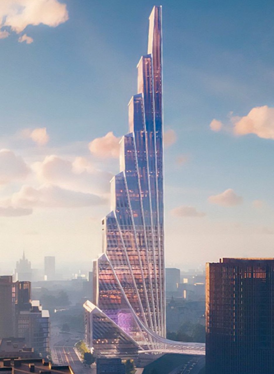 🔵Высотное здание необычной формы возведут в районе Белорусского вокзала. В 65-этажной башне разместят офисы и зоны для общественных мероприятий.