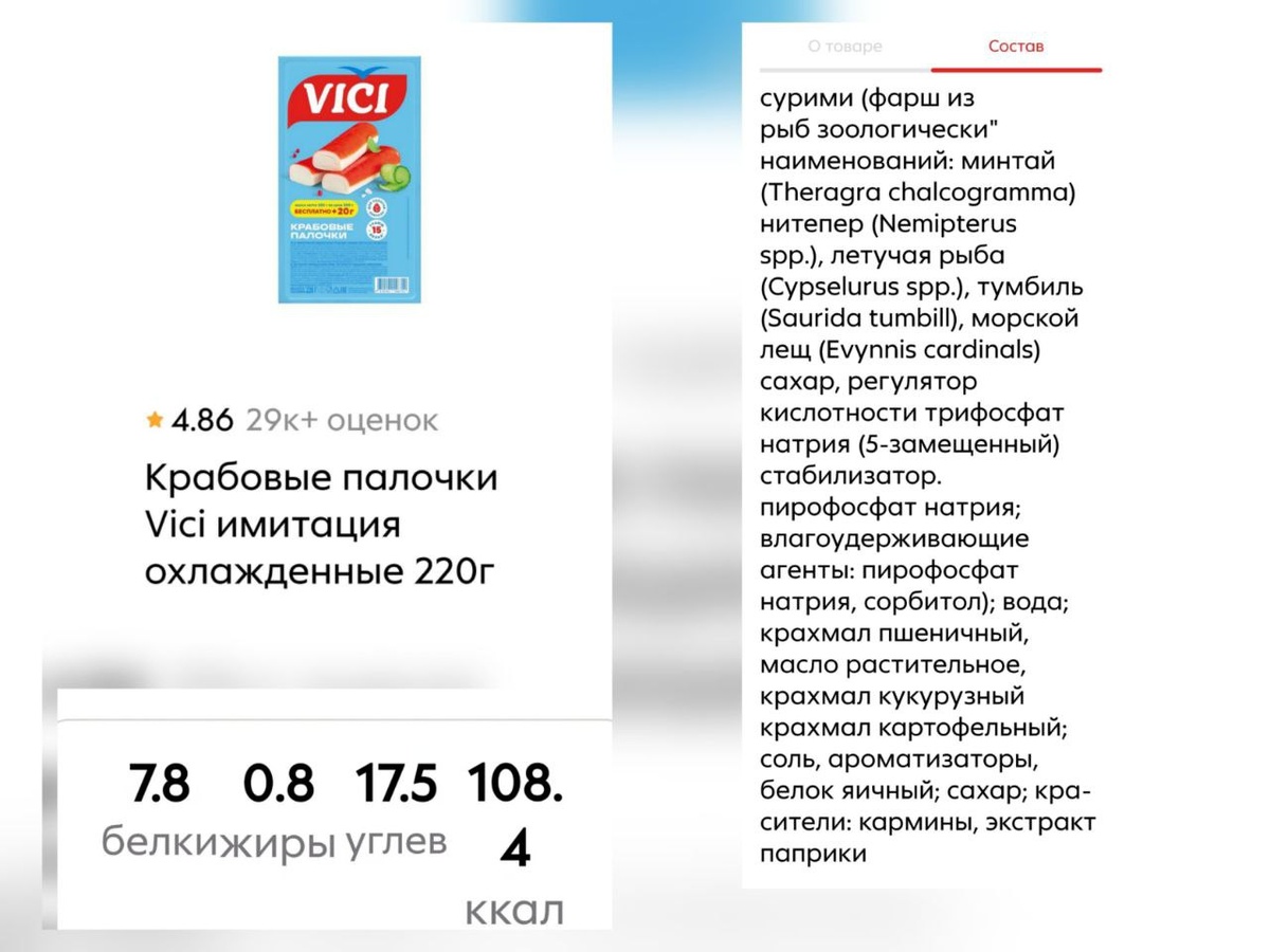 Переосмысливал я тут крабовый салат, искал варианты для замены крабовых палочек, вот и решил заглянуть в состав