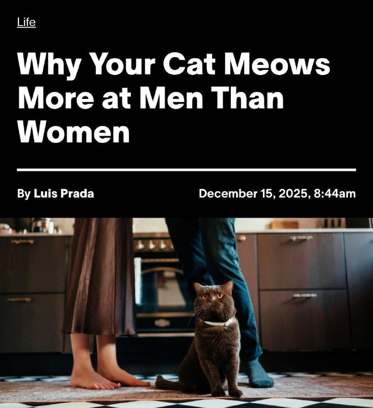 Исследование показало: мужчины хуже считывают сигналы питомцев, поэтому кошкам приходится «объясняться» агрессией. В среднем коты «ругаются» на мужчин 4,3 секунды, на женщин около 1 секунды Горящие новости. Подписаться Источник Telegram: novosti