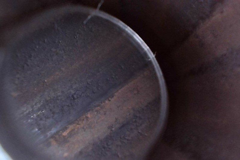 После удаления нагара становится хорошо виден накат меди и критические повреждения тела ствола, которые получены не в результате фактической эксплуатации оружия, а по причине халатного отношения стрелка к обслуживанию. Пренебрегая основным принципом "пострелял - обслужи", владелец карабина регулярно оставлял оружие загрязнённым, проводя обслуживание скорее "сезонно" и редко в полном объёме. В результате чего кислотная среда отложений нагара ускоряла коррозию "чёрного" ствола, что в совокупности с воздействием высоких температур и давления при выстреле, значительно влияло на общую деградацию. В итоге за несколько лет ствол фактически изношен, при этом не выработав даже четверти ресурса. Чудо инженерной мысли забугорных оружейников приказало долго жить. А делов то было, всего лишь вовремя почистить, и картинка была бы совершенно иной.