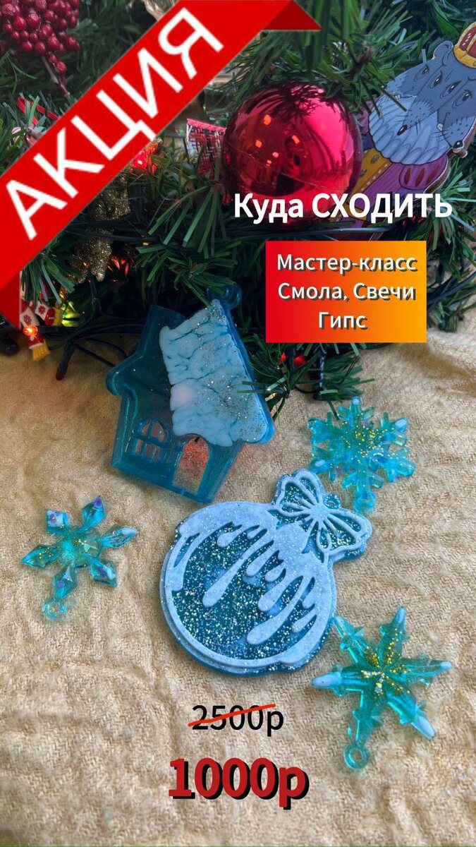 🕯️ Новогодние мастер-классы по знаменитой эпоксидной СМОЛЕ, ГИПСУ или СВЕЧАМ за 1000