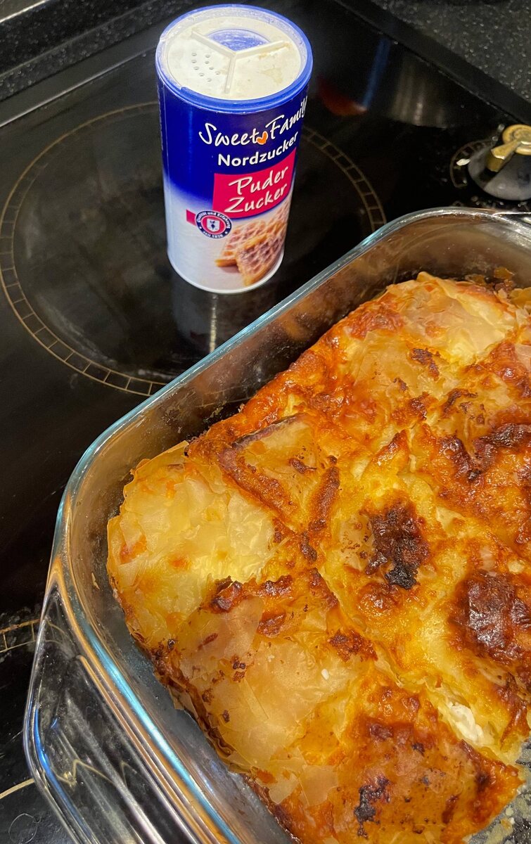 И оставила после себя в том числе этот роллс ройс среди болгарский блюд. Если мне кто-нибудь задаст вопрос какое мое любимое блюдо, я назову баницу, не задумываясь. Традиционное болгарское блюдо (типа пирог) с брынзой из слоеного теста. В детстве мы ели баницу на завтрак, обед и ужин. В машине по дороге из аэропорта, у бабушки на каникулах, везде и всегда. Это сочетание солено-сладкого вкуса врезалось в наши с братом и сестрой вкусовые рецепторы на всю жизнь. Даже сейчас, когда я на больничном и кусок в горло не лезет, я думаю о ней и о том, что она стоит вся такая румяная на кухне, круглые сутки. Употреблять рекомендую с сахарной пудрой и исключительно баницу, приготовленную моей тетей😅 Все остальные почему-то так себе.