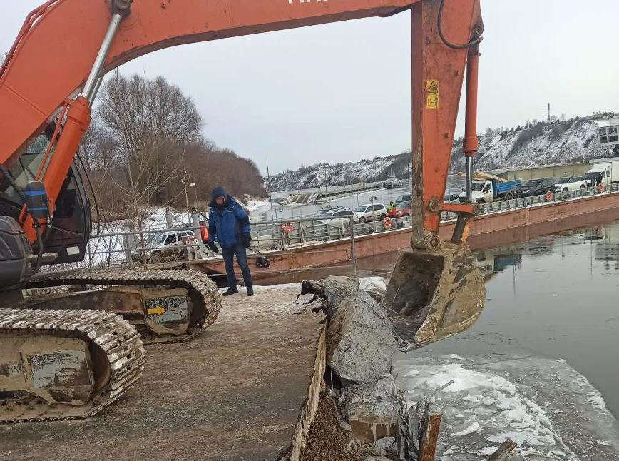 Подрядчик приступил к ремонту снесённого льдом моста в Павлове