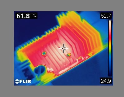 Тепловизор при разработке электроники Тепловизор нельзя назвать основным инструментом при наладке плат, как мультиметр или осциллограф, но в ряде случаев он заметно упрощает работу. Его широко используют для бесконтактного анализа тепловых процессов. С помощью тепловизора легко выявлять скрытые замыкания: они приводят к локальному перегреву, который сложно заметить визуально из‑за небольшой разницы температур. Дыма нет, а плата не работает. Кроме того, тепловизор помогает оценить температурный градиент на радиаторах и других элементах теплоотвода, подтверждая корректность выбранного решения для отвода тепла. Есть и недостатки. Во -первых тепловизоры чувствительны к коэффициенту отражения материалов: медь, блестящее лужение, полированные радиаторы и корпуса микросхем могут «врать» по температуре. Говорят, чтобы уменьшить ошибку, на интересующие области наносят матовое покрытие с известным коэффициентом излучения (чёрная матовая краска) и калибруют показания по контрольной точке. Но