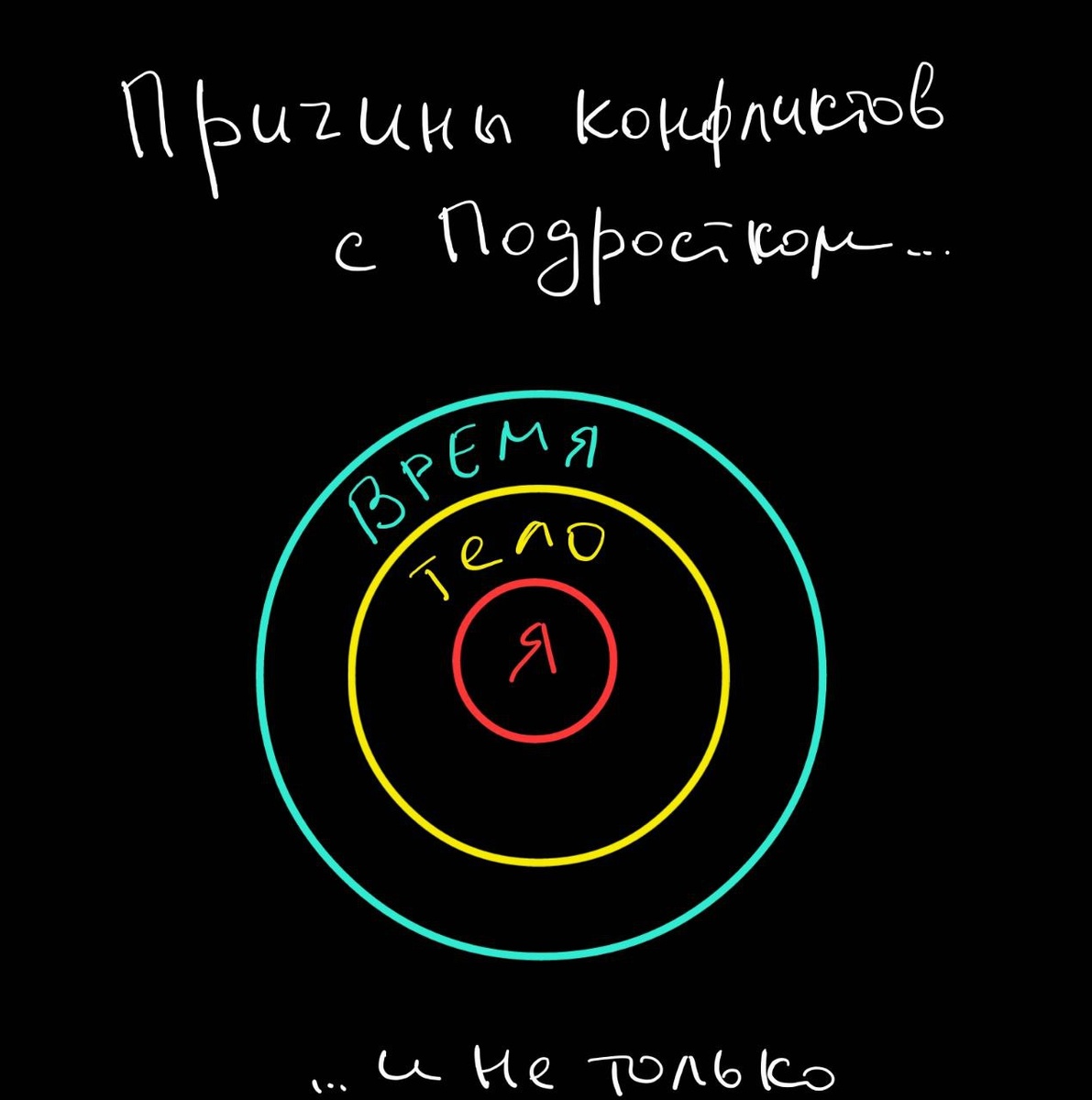 ) Как только мы, психологи, не объясняем причины разборок с Подростком: гормональный всплеск -> активация лимбической системы мозга -> неуправляемые эмоции и прочие научно обоснованные причины Но это всё про Природу, которая реализует встроенный механизм отделения Подростка от родителей и выход в автономию половозрелого человека. А я хочу вам предложить другой угол зрения на конфликт. Коротко расскажу, а вы проверьте на своих примерах и напишите в комментариях - похоже или нет, ок? 😉 Копнём в суть Что есть у каждого человека? Немного, надо сказать, всего три артефакта: Моё Я (личность) Моё Тело Моё Время В моё Я входят: эмоции, желания, потребности, убеждения, мировоззрение. Моё тело - это моё местоположение в пространстве (то есть где я) и некоторое расстояние от тела (социальные границы, когда представители из разных социальных групп будут иметь разный доступ к телу). Моё Время - это то, как я его провожу: сколько и на что трачу. Любое, повторю, ЛЮБОЕ посягательство на од
