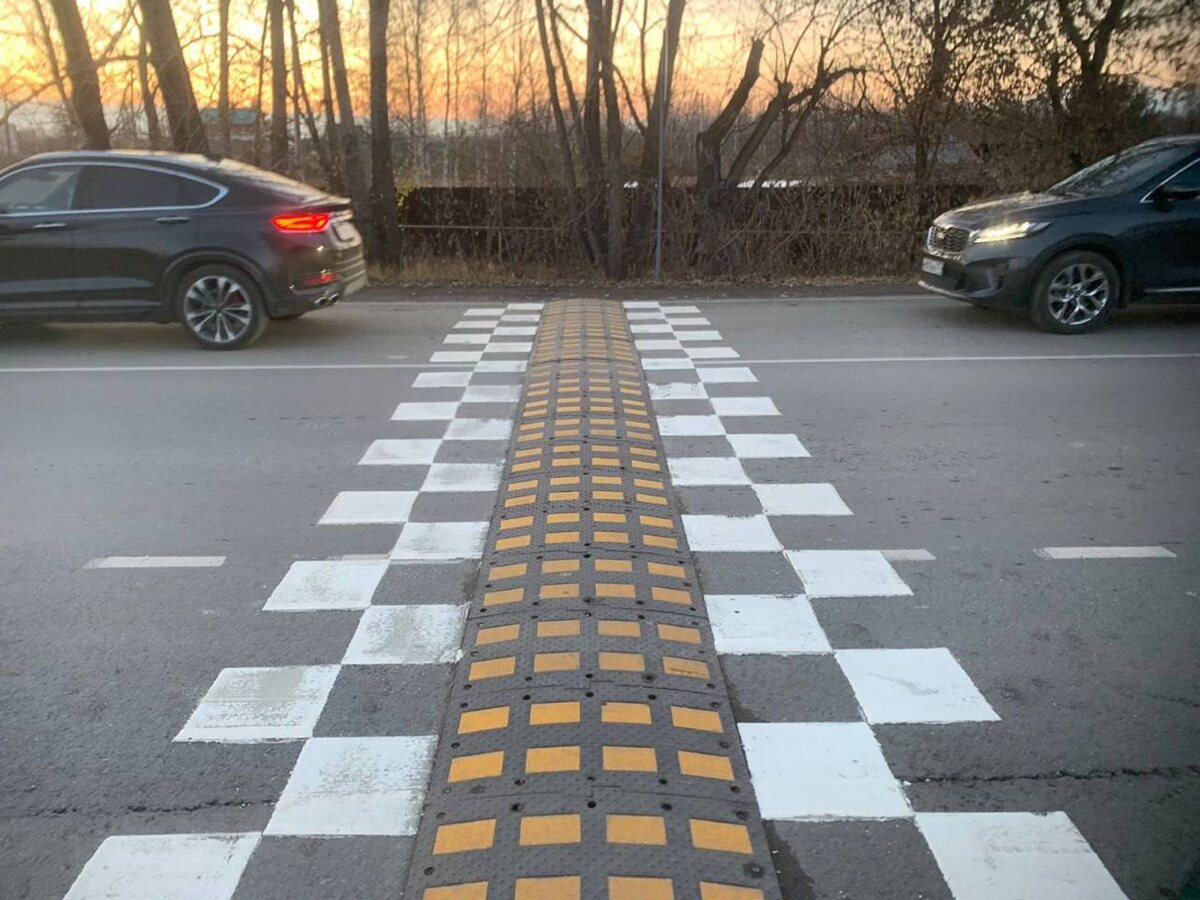 После ДТП на участке между Сельмашем и Сухомесово еще летом установили «лежачий полицейский» Так на дороге ограничили скорость по прямой, где водители часто разгонялись. 📸: Администрация Челябинска