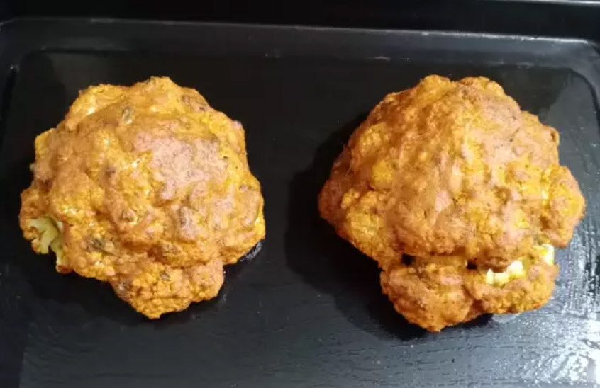 ✔️ Цельная жареная цветная капуста - очень популярное блюдо в западных странах, т.к. это отличная вегетарианская альтернатива любому жареному мясу для особых случаев или праздничного сезона. Она подается в качестве основного блюда для вегетарианцев или гарнира для не вегетарианцев. Цветную капусту целиком можно обжарить разными способами с различными специями и ингредиентами. Обжаренная цветная капуста в стиле тандури действительно очень вкусная с поданным к ней соусом. Ее также подают в качестве гарнира или закуски с небольшим количеством огуречной райты, а можно даже добавить в соус и подавать с паратхой или рисом. Цветная капуста тандури одинаково вкусна в обертываниях, подаваемых с мятным йогуртовым соусом и майонезом тандури.
