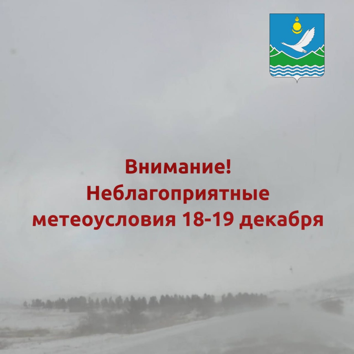 По данным Бурятского ЦГМС — филиала ФГБУ «Забайкальское УГМС», утром и днём 18 декабря, а также 19 декабря по республике прогнозируются неблагоприятные и опасные метеоусловия: — снег, местами сильные снегопады; — усиление ветра до 15–24 м/с; — метели, ухудшение видимости при снеге; — снежные заносы на дорогах; — последующее понижение температуры воздуха на 10°С и более. ❗️ Просим жителей быть предельно внимательными: соблюдайте меры безопасности, по возможности ограничьте поездки, учитывайте ухудшение дорожной обстановки и видимости. Берегите себя и своих близких! 📲 Администрация Селенгинского района в МАХ