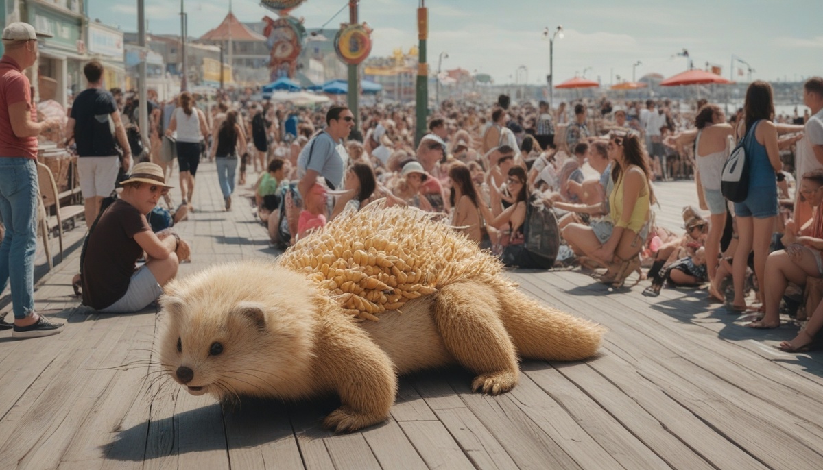 Солнце палило нещадно, пропитывая воздух соленым запахом моря и жареной кукурузы. Мы с женой выбрались на долгожданный отдых, мечтая о тишине и спокойствии, но, как это часто бывает, реальность внесла свои коррективы. И коррективы эти имели мохнатый хвост и привычку лежать посреди тротуара.